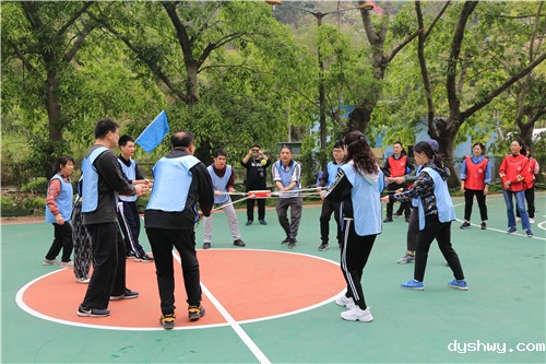 24日上午,考验团队默契、紧张又有趣的团队协作项目开始了。秘书处员工分为两队后,各自设计队名、口号。随后,大家列着整齐的队形、喊着响亮的口号,进行团队风采展示。