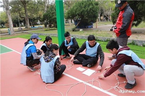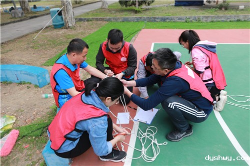 结绳记事是在规定时间内将教官提供的信息制作成绳结,然后进行破译工作,将绳结的信息翻译成教练提供的信息。大家通过沟通,集思广益,迅速制定密码本,在比赛中培养了快速分析、快速决策的能力。