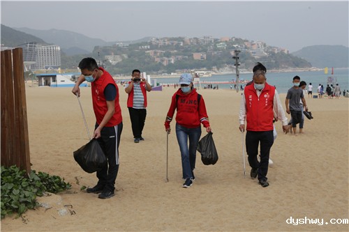 拓展培训结束后,秘书处还组织全体员工到大梅沙海滨公园开展庆祝建党100周年志愿服务活动。协会志愿服务队带着夹子、垃圾袋,开始了海滩垃圾拉网式清理,大家不畏烈日、顶着海风,认真搜寻捡拾沙滩上的烟头、塑料袋、包装纸屑等垃圾。通过志愿者们的辛勤劳动,海滩上垃圾明显减少,以实际行动守护大梅沙美丽海岸线。