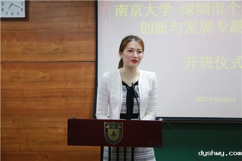 南京大学国际创新创业学院副院长钱艳首先致欢迎辞,她对深圳学员的到来表示热烈欢迎,她谈道,南京大学是座历史悠久的百年名校,是首批国家“双一流“、世界一流大学A类建设高校。长期以来,围绕“办中国最好的本科教育”的奋斗目标,不断深化创新人才培养机制改革,积极为社会各行各业培养具有创新精神、实践能力和国际视野的未来领军人才和拔尖创新人才。本次培训,南京大学将充分发挥自身学科优势和教学优势,以一流的教研支撑一流的课程,会同深圳市个私协会一起把培训班办好。