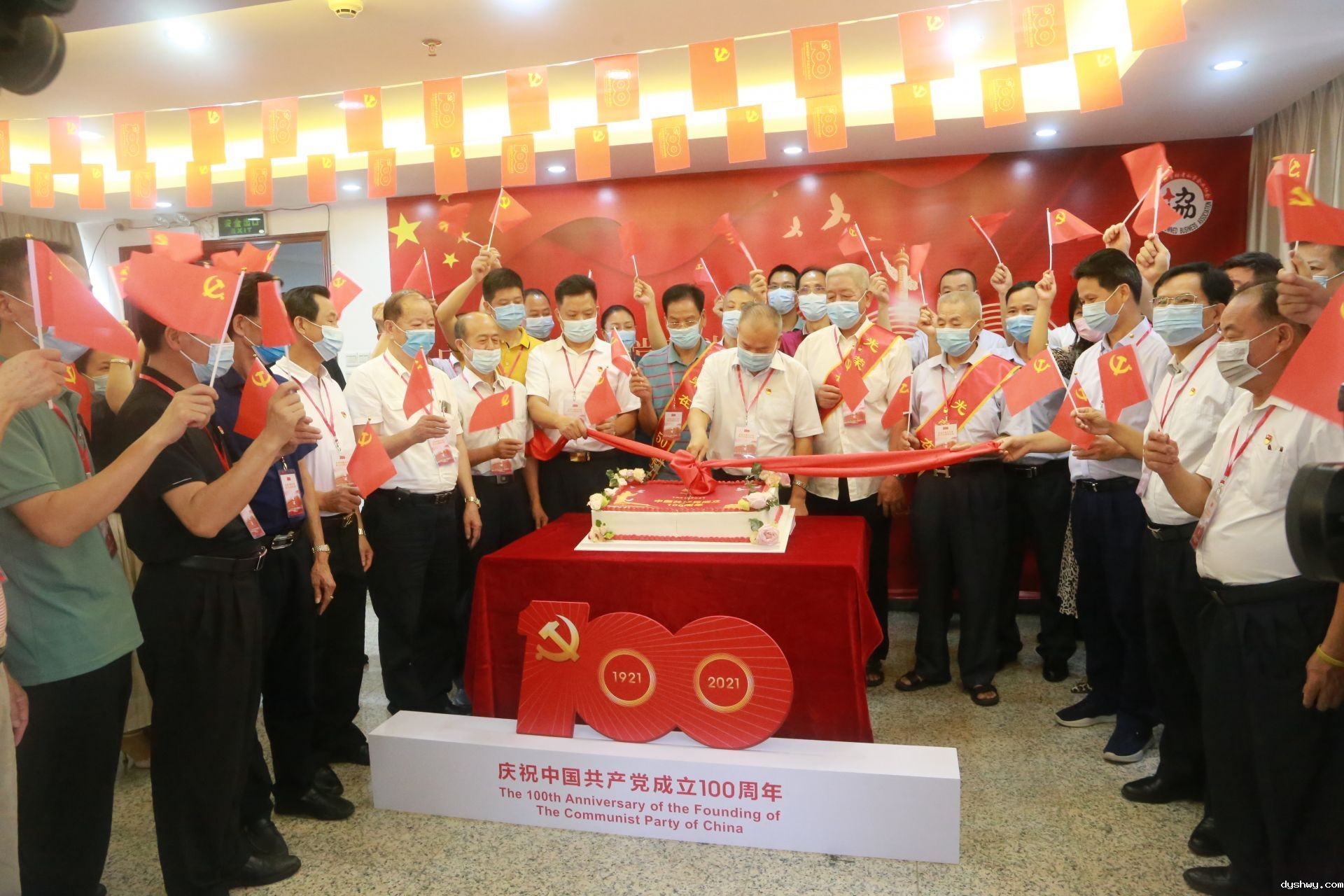 庆祝大会开始前,全体党员举行了切蛋糕仪式,大家挥舞党旗,共同见证了这百年历史性时刻。向党献上祝福,衷心祝愿伟大的党明天更加灿烂辉煌。