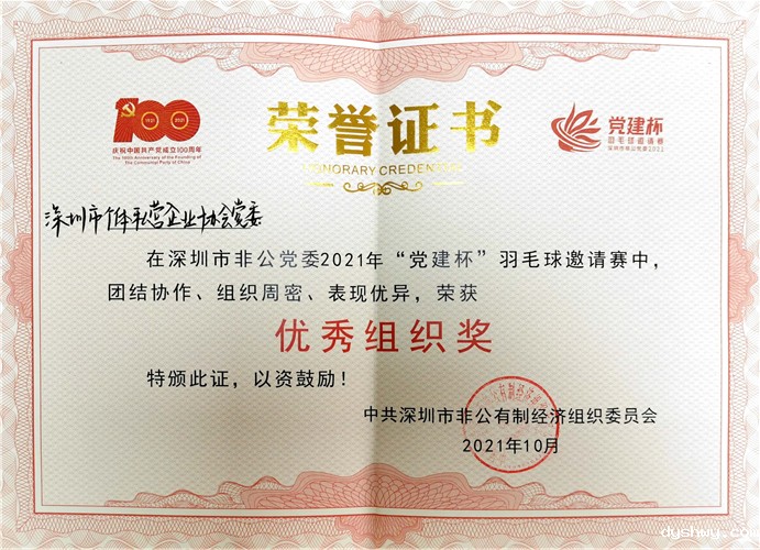为庆祝中国共产党成立100周年,激励广大党员干部在党史学习教育中坚定理想信念、汲取奋进力量,10月16-17日,由深圳市非公党委主办、万科集团党委承办的2021年“党建杯”羽毛球邀请赛在罗湖体育中心圆满举办。市非公党委直属党组织共有43支代表队、436名运动员和领队参加了活动。