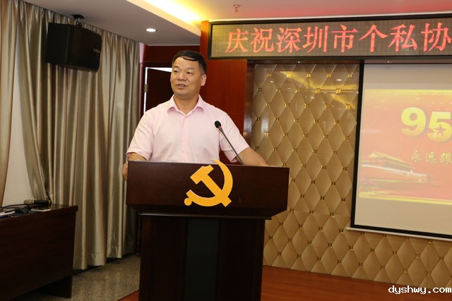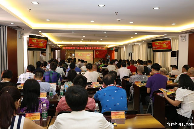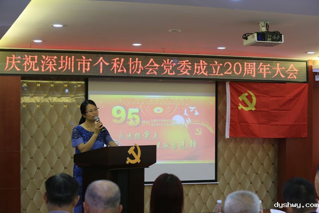 市 非公党委副书记王荫琦在会上作重要讲话。他首先转达了非公党委对协会党委成立20周年的祝福以及对协会党委全体党员的亲切问候。他说,市协会党委从园岭个 体党支部起步,高举一面光辉的旗帜,创造了全国个体党建的多个第一,取得了十分辉煌的成就。真正地起到了凝聚党员智慧和力量,夯实党在个体商户中的阶级基 础、执政基础的作用,做了很多如创建红旗文明诚信企业(商户)、创建“三亮”共产党员店档亮身份经营等富有成效的工作;真正地起到了政治引领作用,推动了 一批又一批的企业主、个体户做强做大,是很多文明商户、大型企业的摇篮、孵化地;真正地起到了政治核心作用,在国家民族的大灾大难面前,全力发动党员、会 员捐钱捐物,组织“迎大运争先锋优品质优服务”、呼吁党员带头稳定物价抗击冰雪灾害等活动。交出了一份喜人的成绩单,造就了市协会党委光辉的20年。