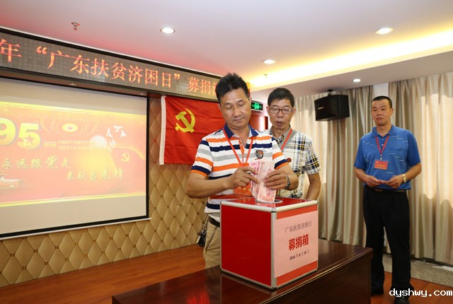 会 议伊始,党委首先举行“6·30”广东扶贫济困日捐款仪式,在简单而隆重的募捐环节中,参会党员纷纷慷慨解囊,奉献爱心,党委副书记沈素芳捐出1000 元,党委副书记兼纪委书记游德胜、清水河支部书记庄春杂各捐出600元,翠竹支部副书记陈少亮捐出630元,优秀党员梁路平捐出500元。出席活动的全体 党员共为贫困地区募集了10020元善款。