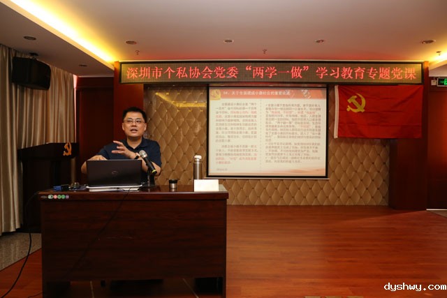 为 落实和推进全体党员“两学一做”的学习教育,市协会党委邀请市委党校王鑫教授以《学习贯彻习近平总书记系列讲话精神,坚定自信实现中华民族伟大复兴中国 梦》为题,为大家上了一堂生动党课。他为党员们介绍了习总书记系列重要讲话的科学内涵和核心要义,分析其显著特点,并就如何落实讲话精神,坚定走有中国特 色社会主义道路等方面作了重点讲述。参训党员认真听讲,纷纷被王教授深入浅出的讲授、对理论知识的精彩解读、丰富的案例分析所吸引。