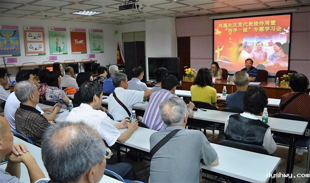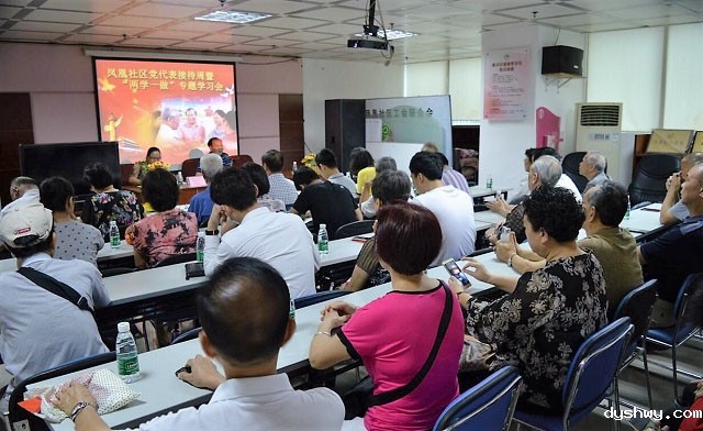 5月27日下午,市党代表曾宏兴走进挂点的凤凰社区会议室 ,为社区联合党委班子、各居民支部书记及社区党员共60多人宣讲“两学一做”,送上了一堂精彩的“怎样做一名合格党员”党课。