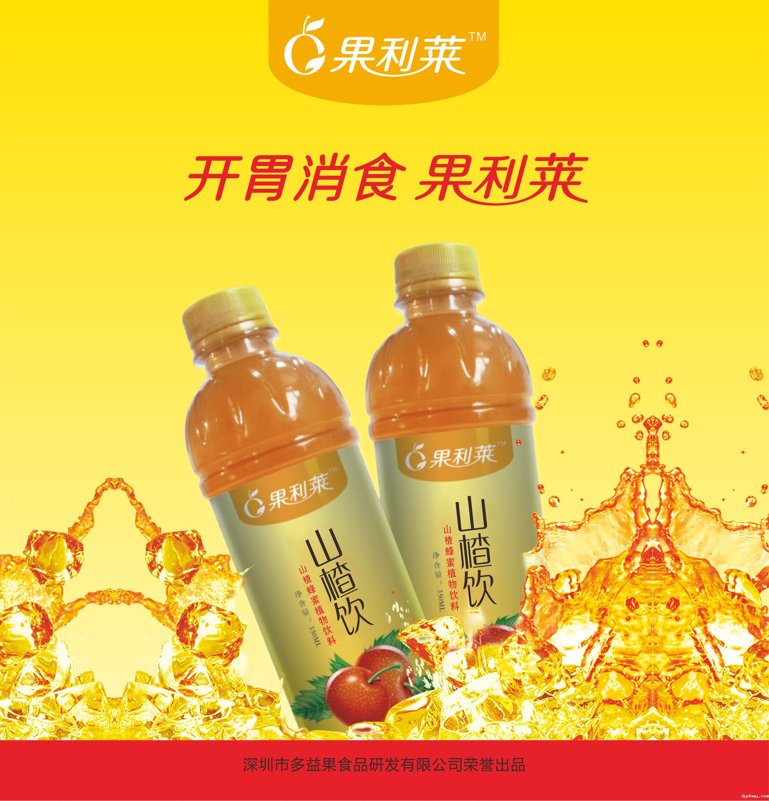 在第八届《深圳民企时代》封面·卷首人物联谊座谈会的晚宴上,由深圳市多益果食品研发有限公司赞助的一款口味酸酸甜甜、名为“果利莱山楂饮”的饮品受到与会人员的一致好评。