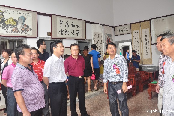 观澜素有“文化之乡”、“侨乡”、“革命老区”的美称,发展循环经济、国际原创版画、观澜湖高尔夫球会、国瓷观澜窑是观澜四张亮丽的“名片”,还有中国首家以旅游度假国画创作为主题的“中国(观澜)山水国画产业基地”以及全国古典家具文化的代表之一观澜红木家居艺术街。在这充满传统文化气息的环境里,今天深圳市红荔书画馆在新挂牌成立的观澜创作基地举办“两岸三地”知名书画家书画展和慈善义卖活动,必将进一步繁荣龙华新区的文化事业和慈善事业。让我们以此为契机,在观澜这个有着深厚客家底蕴的文化之乡,努力创作,宣传观澜,推介观澜。希望观澜在文化事业的发展上更上一层楼,取得物质文明和精神文明建设的双丰收。愿红荔的四海朋友,书画家们,都到红荔观澜创作基地来,这里的人文山水,一定会热情陪伴着你们,激发您的灵感,让您园一个又一个美好的“中国梦”,创作出更优美的艺术作品!为美好和谐新龙华建设事业再做新贡献。