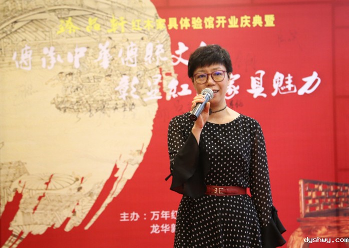 楼溟在仪式上致辞,她向来宾介绍道:“臻品轩古典家具有限公司在陈丽董事长的带领下,文明经营,诚信待客。臻品轩对红木家具执著的‘臻品’情怀、认真雕琢每一件产品的敬业精神,打动了四方来客,赢得了消费者长久的青睐与支持。因此,臻品轩古典家具有限公司当之无愧地荣获了深圳市‘红旗文明诚信企业’称号。”