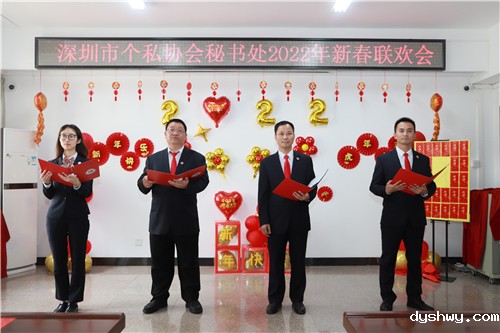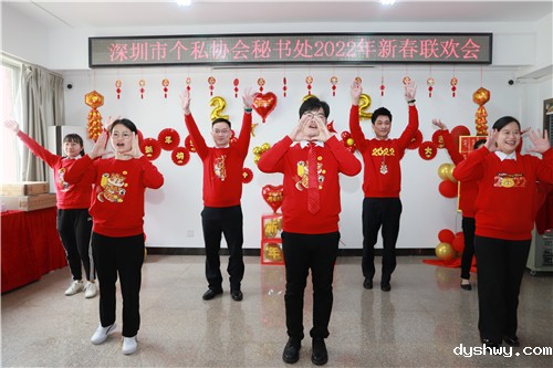 歌舞欢腾闹新春,虎虎生威踏征程。为充实员工文体生活,展现协会人饱满的热情、昂扬的斗志,在新春佳节来临之际,1月21日下午,市个私协会秘书处在五楼培训室举办2022年新春联欢会,全体员工上演了一场多姿多彩的“春晚”,献上寅虎新春祝福,为新的一年协会创新发展喝彩。活动特别邀请常务副会长林烈华、理事朱春龙作为嘉宾,与全体人员一起共庆新春佳节,同祝协会明天会更好。