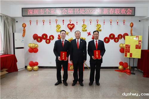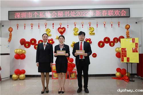 不断进取、开拓创新是他们2021年的不懈动力,脚踏实地、认真工作是他们2021年的行动实践。晚会现场,会长曾宏兴对荣获2021年度“工作积极分子”“先进工作者”以及“广东省个私协会系统先进工作者”的员工颁发获奖证书,表彰他们在过去一年来做出的突出成绩,激励秘书处全体人员在2022年踔厉奋发,笃行不怠。执行会长兼秘书长楼溟对困难员工进行慰问,为他们送上慰问金,让员工真正体会到协会这个大家庭的温暖。