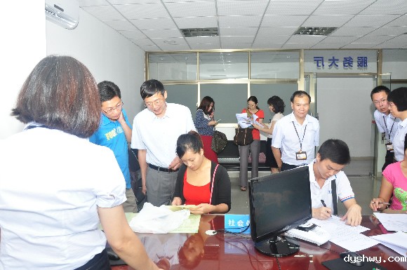 图为杜斌副局长亲临我会服务大厅现场检查指导社保服务工作