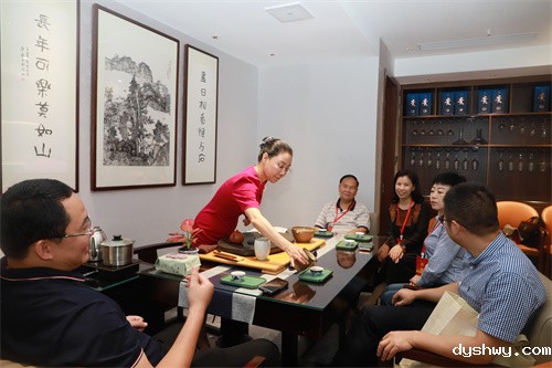 曾宏兴一行首先来到石灵贸易有限公司位于罗湖区东昌路的石灵茶酒文化馆,了解疫情以来企业生产经营、稳岗就业和创新发展情况,与公司董事长阮汉新进行了座谈交流。石灵茶酒文化馆是阮汉新女士在疫情之下新开张的第三家分店,实现了疫情后一年一家新店的扩张速度。曾宏兴对“石灵人”在特殊时期的坚守和付出表示感谢,对公司在疫情防控中体现出的责任担当表示肯定,他鼓励企业要坚定信心,一手抓生产经营,一手抓疫情常态防控,进一步增强创新能力,扩大市场份额,将企业做大做强。他希望企业不断增强社会责任和意识,积极履行职责,主动参与协会的各项活动,在活动中提升自我,找到归宿感和获得感。他要求协会秘书处要广泛开展走访调研,认真听取和梳理会员企业反映的心声、问题和建议,主动与政府相关部门沟通和反映,将政府惠企纾困政策落实落细落地,全心全意为会员企业办实事、办好事,助力企业健康发展。