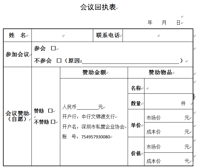 说 明:请于2015年12月20日前将《会议回执表》反馈市个私协会,便于筹划会议。